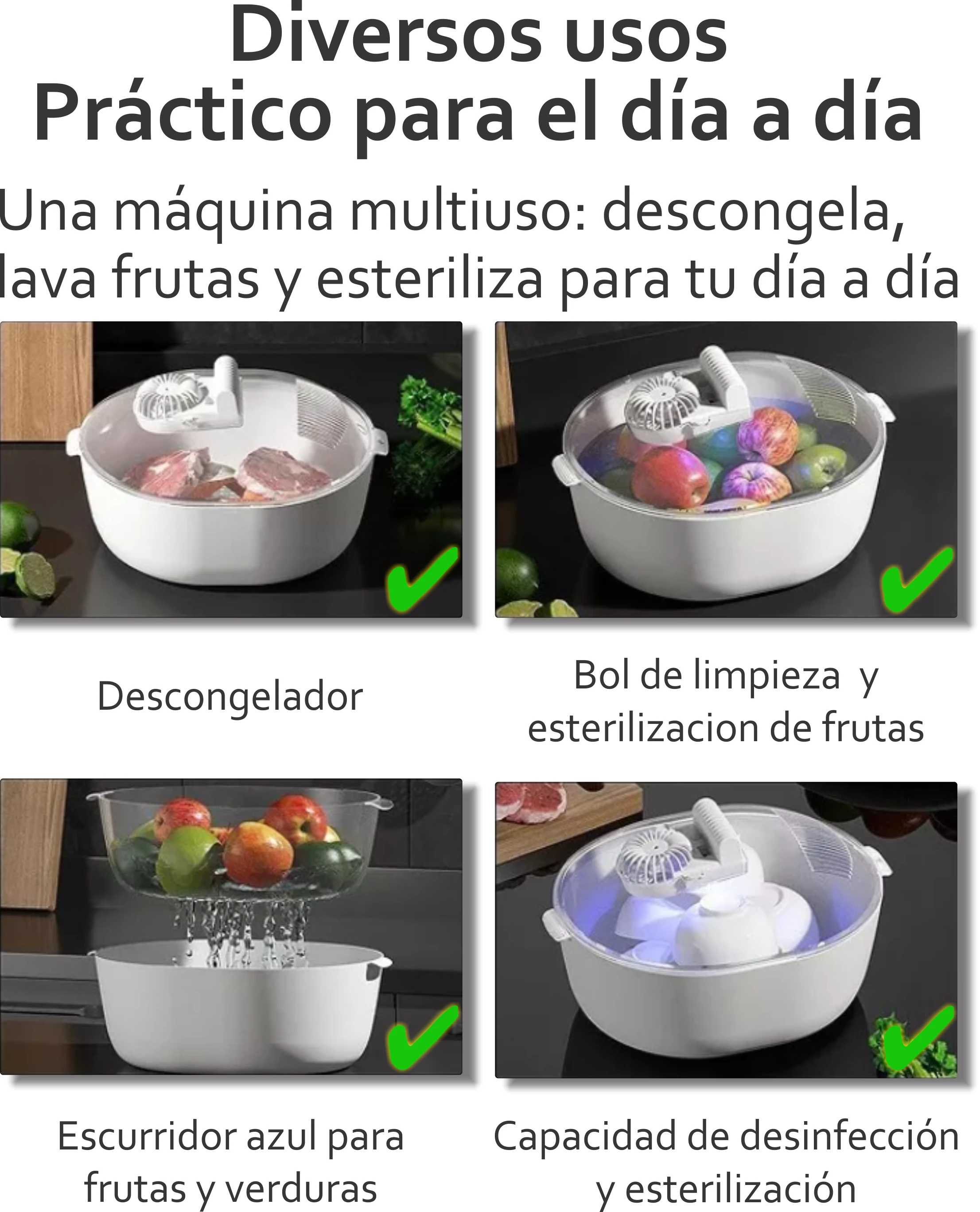 • ? Versátil para descongelar y limpiar alimentos.